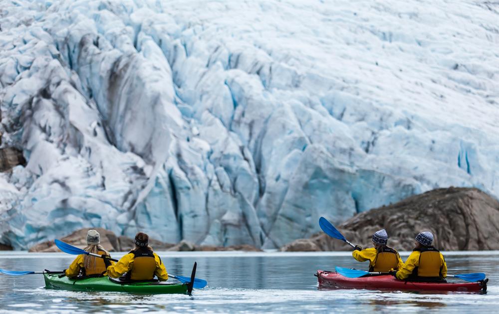 A unique kayak tour amid icebergs and mighty nature. See Folgefonna glacier up close, glide across crystal clear water and be amazed.
